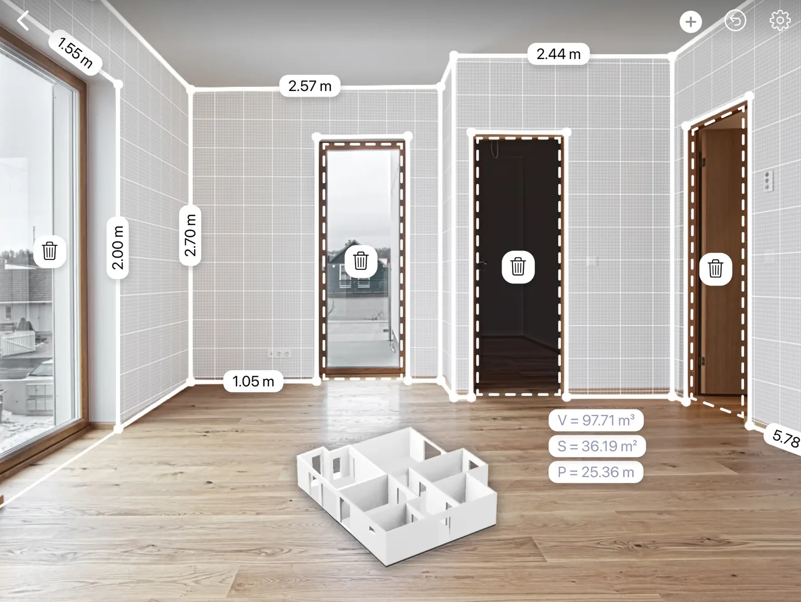 - Medición de puertas y ventanas con cinta métrica virtual.